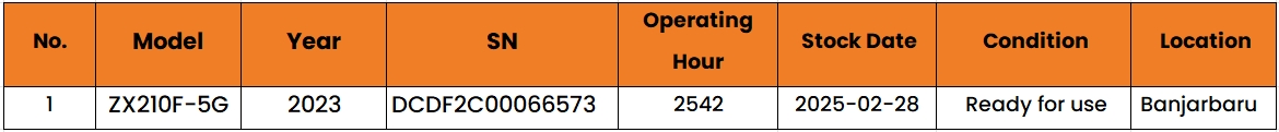 The available stock of heavy equipment of PT Hexa Finance Indonesia is as follows: